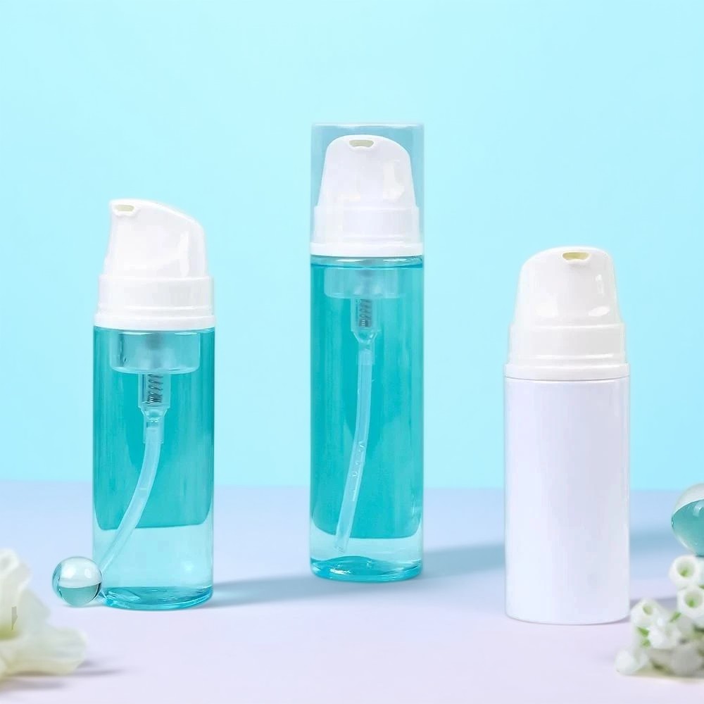 Nuestras últimas ofertas en diseño de botellas de espuma se centran en la estética y la comodidad del usuario. Con las botellas transparentes a la izquierda, los clientes pueden controlar fácilmente el uso del producto. Gracias al plástico transparente de la **botella de espuma**, la fórmula azul vibrante en su interior se convierte en un elemento destacado. Al mismo tiempo, la opacidad de la opción de botella blanca le confiere una elegancia única, garantizando que las fórmulas sensibles permanezcan protegidas de la luz. Estas botellas incluyen dispensadores blancos con bomba, diseñados de forma innovadora para una dispensación fluida sin obstrucciones ni desperdicios.