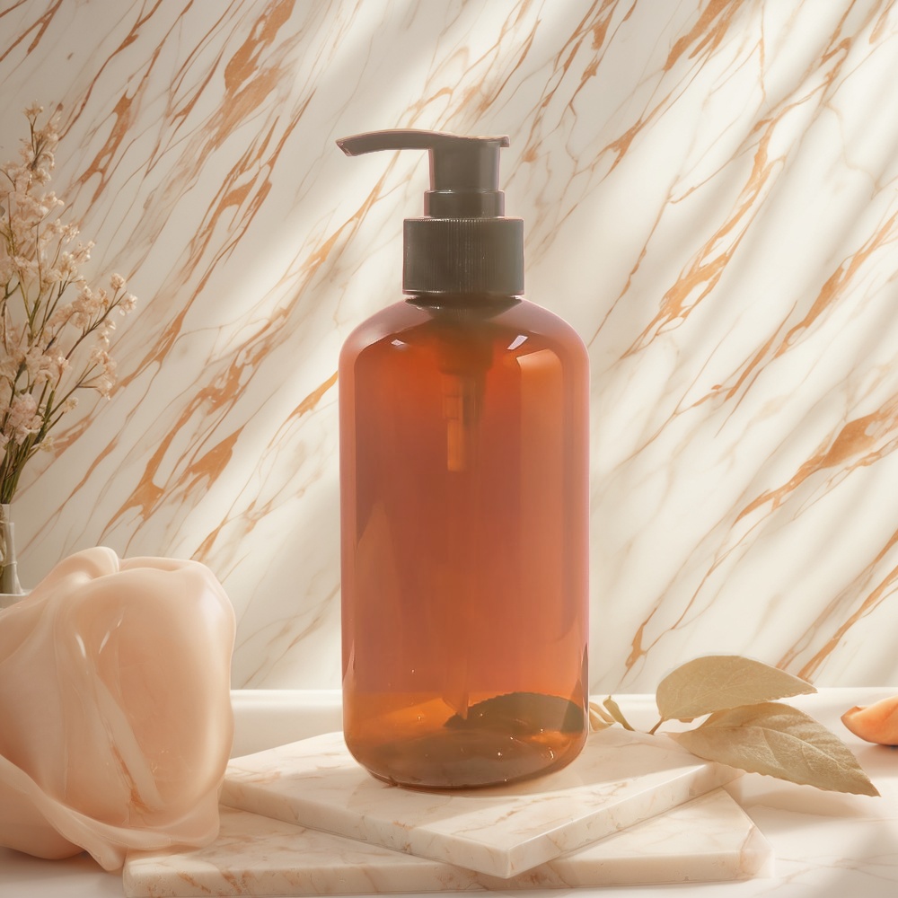 Un flacon de lotion corporelle efficace allie avec brio esthétique et ergonomie. Le flacon Amber Elegance illustre parfaitement cette synergie. Sa forme cylindrique et sa base stable offrent une excellente stabilité sur les surfaces humides ou irrégulières de la salle de bain, évitant ainsi les déversements accidentels. Sa silhouette minimaliste et chic est également conçue pour une prise en main et une utilisation confortables d'une seule main. L'ouverture du flacon est suffisamment large pour faciliter le remplissage, favorisant ainsi la réutilisation et la durabilité. L'association du corps ambré chaud et translucide et de la pompe noire mate opaque crée un objet visuellement saisissant qui sublime tout décor. Cette approche réfléchie du packaging des flacons de lotion corporelle transforme le quotidien en une expérience plus luxueuse, tactile et agréable, renforçant la qualité supérieure du produit qu'il contient.