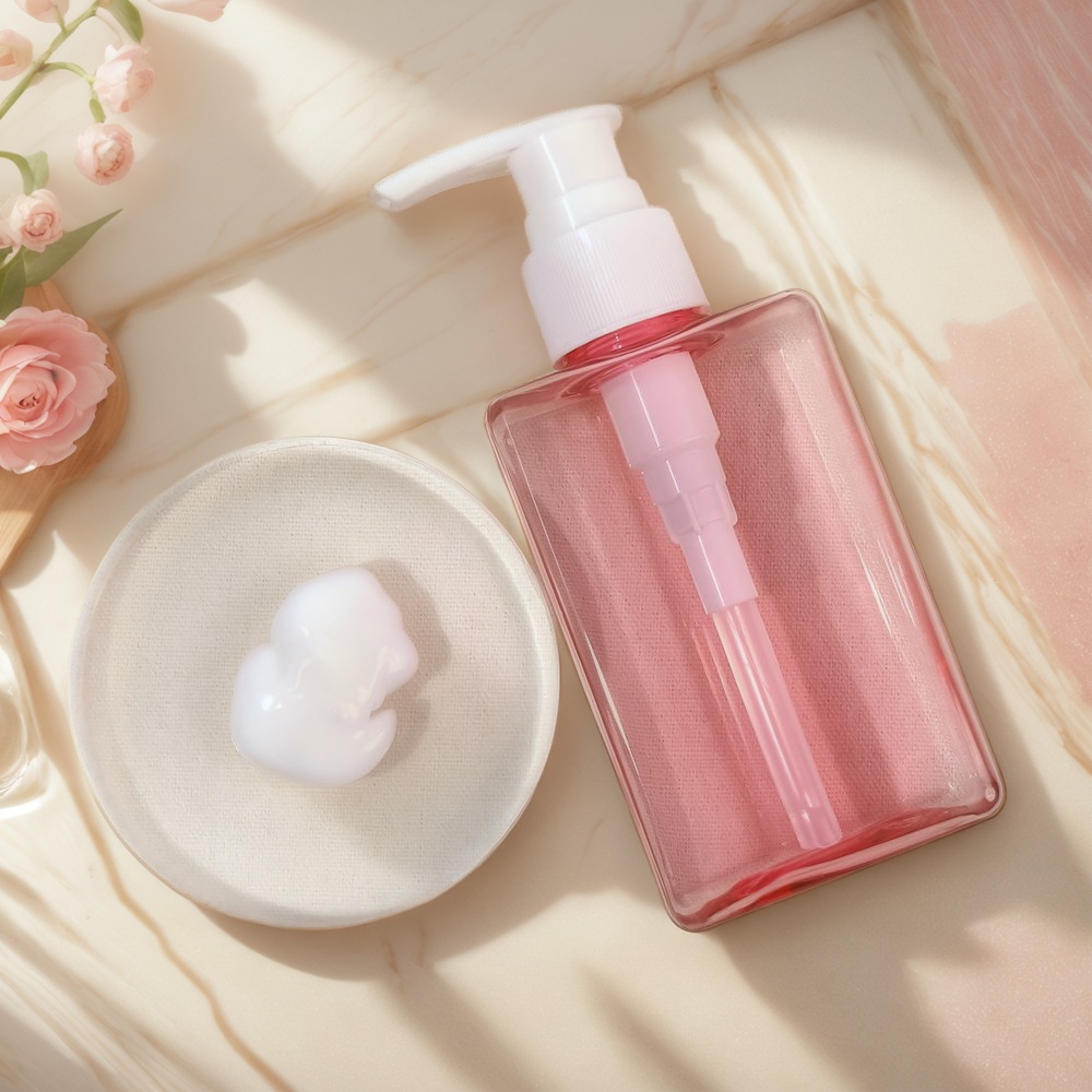 Além dos benefícios práticos, o apelo estético de um frasco com pump bem projetado não pode ser exagerado. Pense em um recipiente retangular e elegante com um formato moderno e minimalista, talvez em um rosa translúcido marcante que indique o frescor do interior. Este não é apenas um recipiente para seu limpador ou loção; ele se torna uma peça de destaque para a bancada ou penteadeira do seu banheiro. Ele comunica uma sensação de ordem, elegância e atenção aos detalhes. Um frasco com um design elegante transforma uma necessidade diária em uma peça de decoração, transformando seu espaço e fazendo com que sua coleção de cuidados com a pele pareça intencionalmente selecionada. É um pequeno toque de luxo que reflete um compromisso com a qualidade em todos os aspectos da sua vida, combinando perfeitamente com uma estética chique e contemporânea.