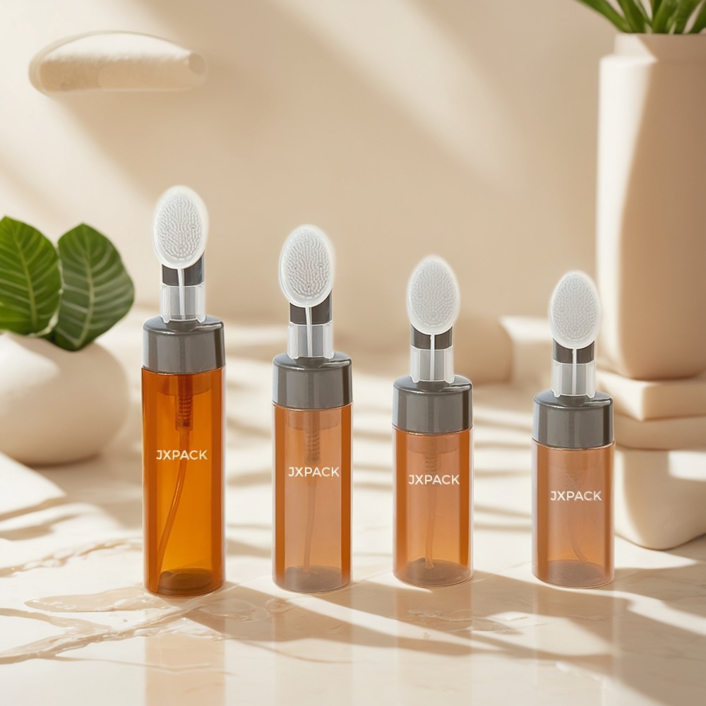 Os modernos frascos de espuma com bomba estão evoluindo de simples dispensadores para ferramentas de beleza multifuncionais. Uma inovação de destaque é a inclusão de uma cabeça de escova de silicone integrada. Esses pincéis macios e flexíveis — disponíveis nos clássicos formatos oval ou charmoso em formato de coração — permitem aplicar e massagear o produto diretamente na pele. Esse recurso é fantástico para uma limpeza facial profunda, proporcionando uma esfoliação suave e melhorando a circulação. O pincel transforma um simples frasco em um sistema completo de cuidados com a pele, combinando limpeza e aplicação em uma única etapa fácil.